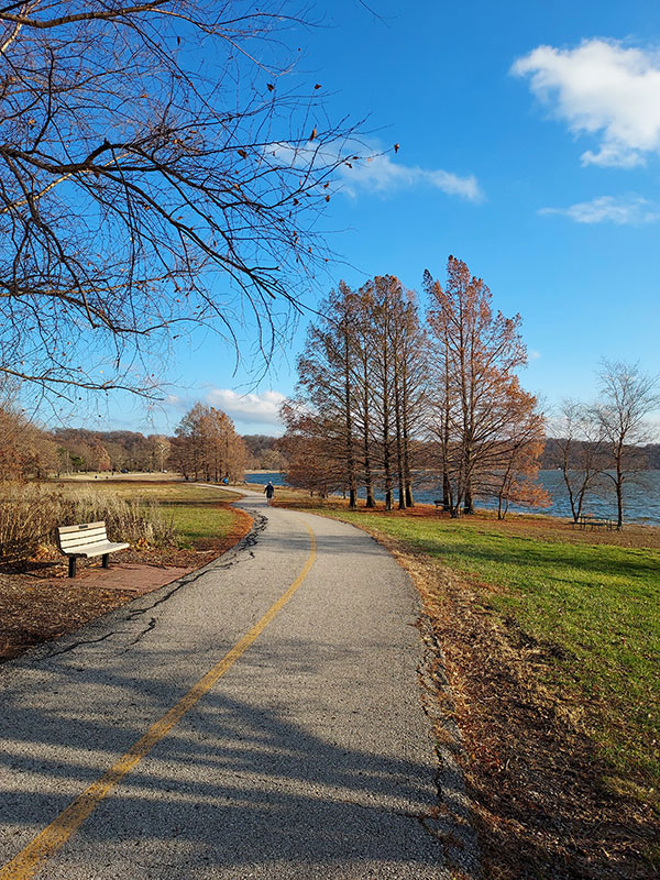 Creve Coeur Lake is surrounded by a winding paved trail, providing a perfect path for a standard 45-minute run during the week. It is especially nice in the summer and fall as the temperature is cooler near the lake and the scenery is breathtaking enough to forget a different kind of breathtaking found in running. My teammates and I have also run around the lake in the winter, and we had to incorporate ice skating into our run to carefully glide across the ice patches on the trails in order to avoid slipping or rolling an ankle.