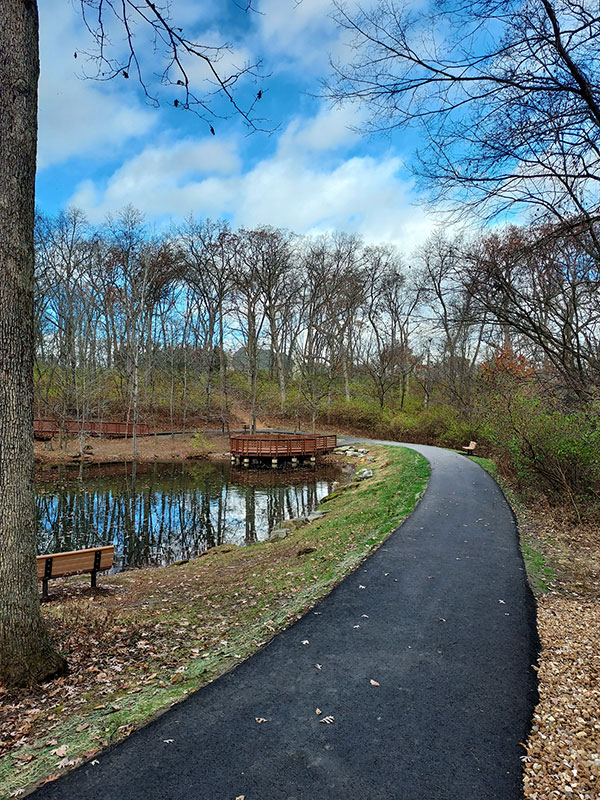 My teammates and I only recently found Longview Farm Park because our coach moved our runs from 45 minutes to 55 minutes one day. Because of the extra time, we were forced to find a new route. The trail running through this park weaves through trees and around a lake, showcasing beautiful colors in the fall. The lake in the center sits in a valley with the trail entrances dipping down and then rising up, giving us a little hill workout within our run.
