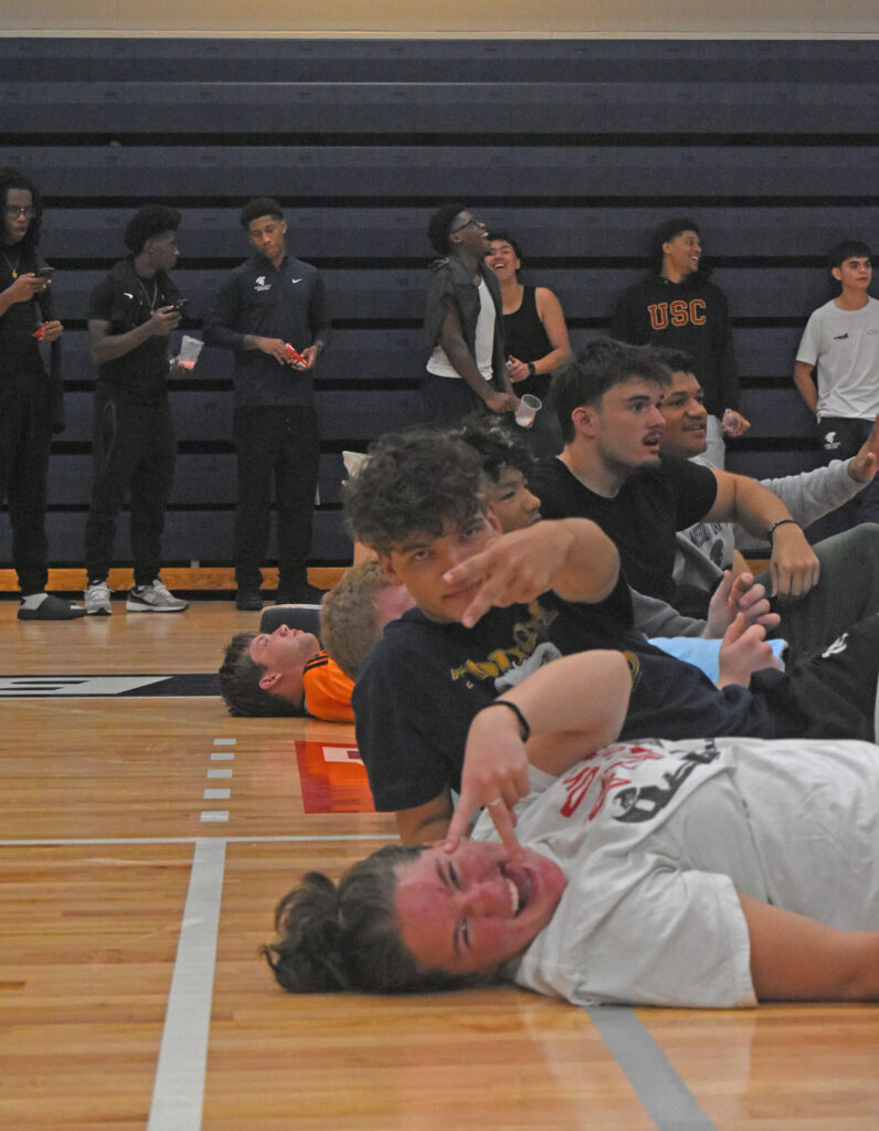 Stakes were high during the dodgeball game as Spencer Berlander gets ready to spring into action. Photo by AJ Tufuga