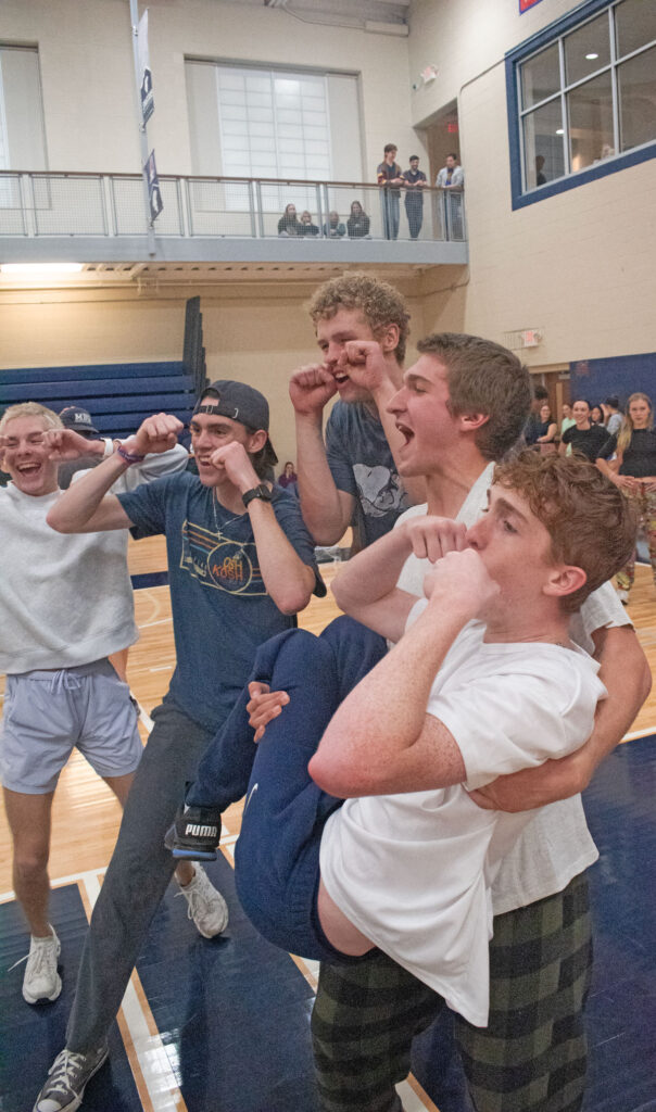 There was some friendly taunting following a big upset from the results of the mattress surfing competition. Pictured from left to right: Matthew Johnson, Jeremy Thoma, Solomon Talbott, Isaac Allgeyer and Owen Rodrigue. Photo by AJ Tufuga