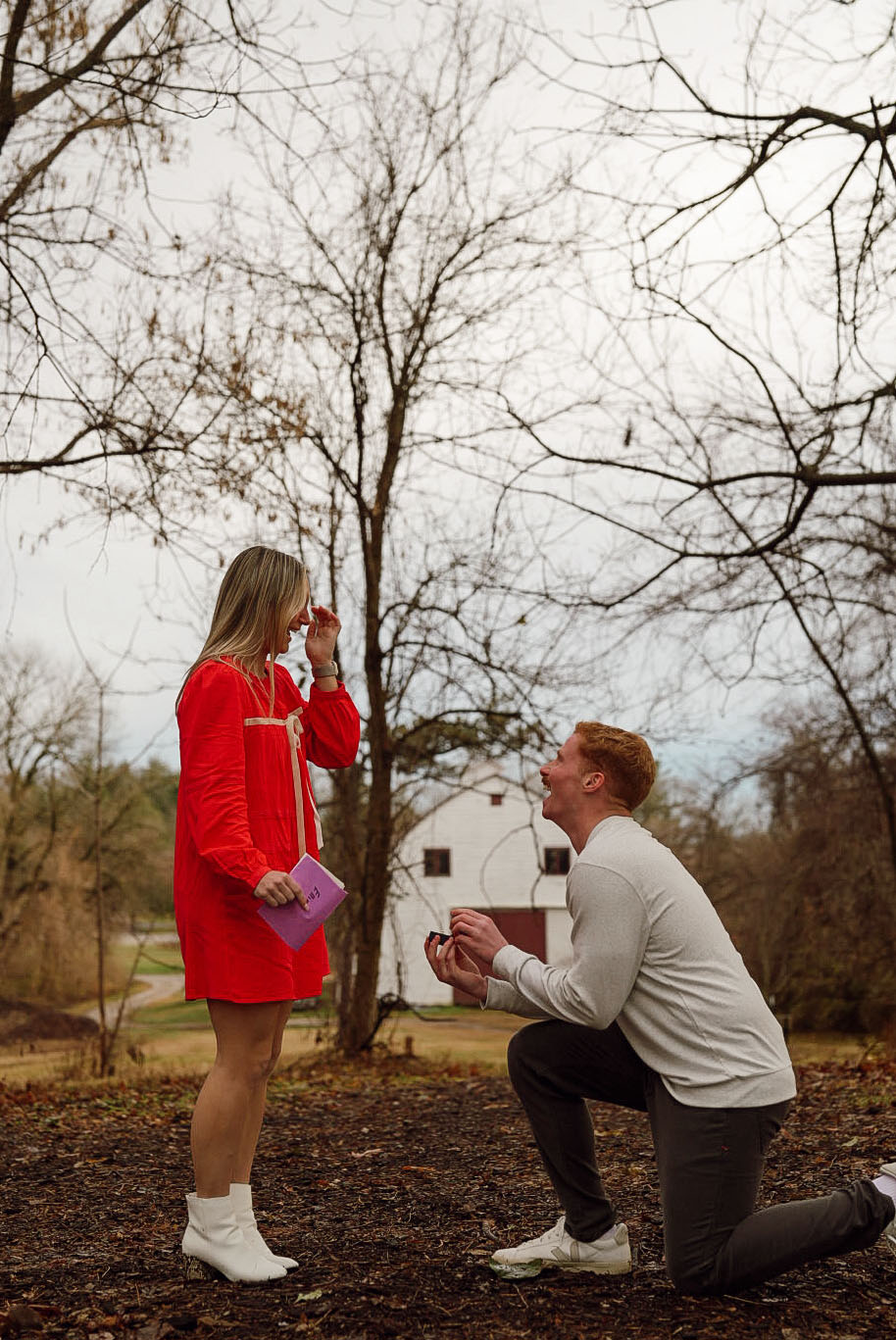 “Jake and I met in 2023 while sitting at the same table at an FCA [Fellowship of Christian Athletes] trivia night fundraiser. It wasn’t exactly love at first sight, but I do remember thinking that the guy in the Hawaiian shirt with the red hair was really smart, really humble, and really cute. Our trivia table became a friend group that hung out almost every day that spring and into the summer — playing pickleball, watching Star Wars movies, learning how to golf, trying new flavors at Clementine’s and bowling on Monday nights — and I fell hard and fast for Jake because I had never met someone so gifted in so many areas, yet so kind, humble, and gentle. Eventually, our group hangouts turned into just the two of us spending time together, and once we started dating, we pivoted pretty quickly into serious conversations about marriage and the future because neither of us wanted to waste time. We got engaged four months after we started dating and got married a few months after that, and on my wedding day in March 2024, I thought there was no possible way I could love Jake more than I did in that moment; somehow every day since has grown my love for him (and my like for him!) because I am blessed to be married to someone who has seen me at my lowest and still tangibly lives out the gospel by sacrificially loving me every single day!”